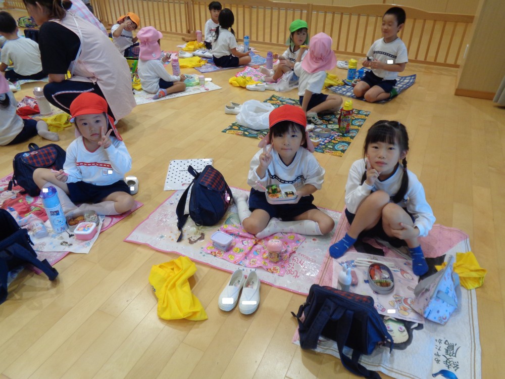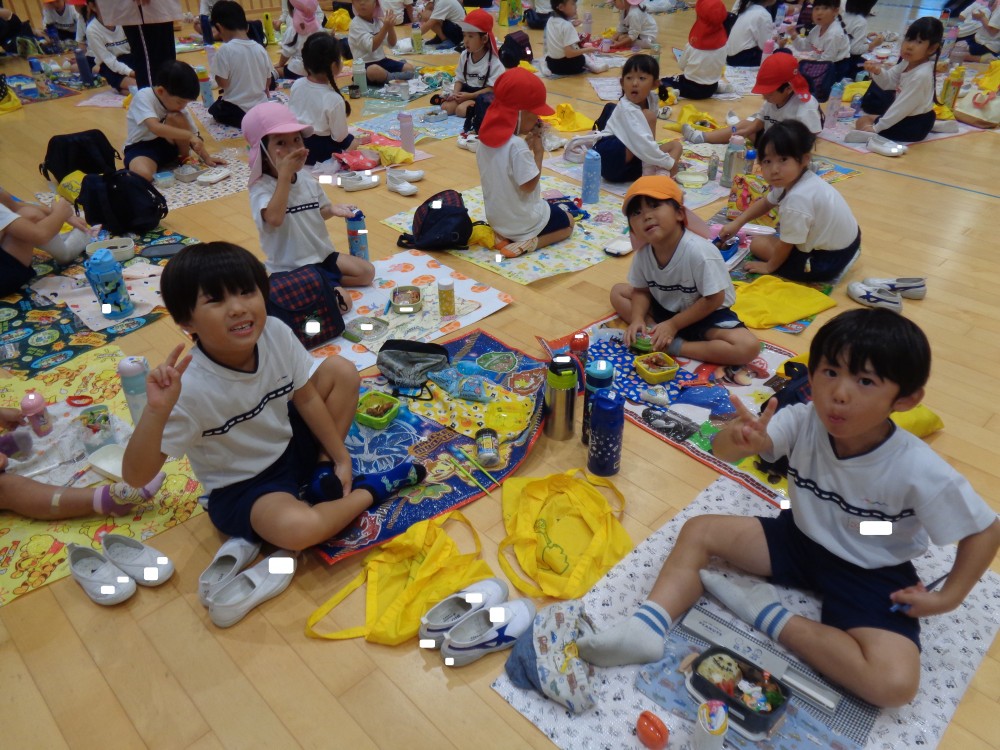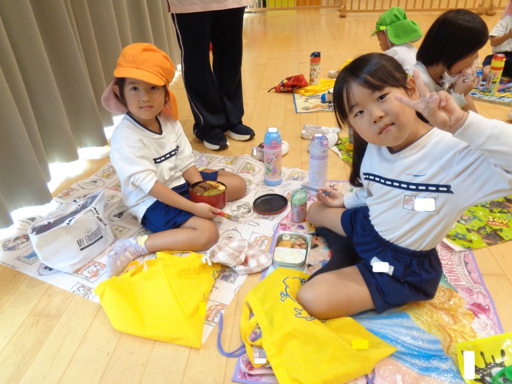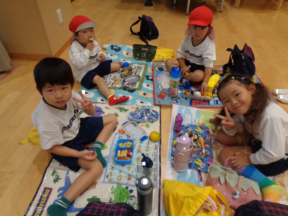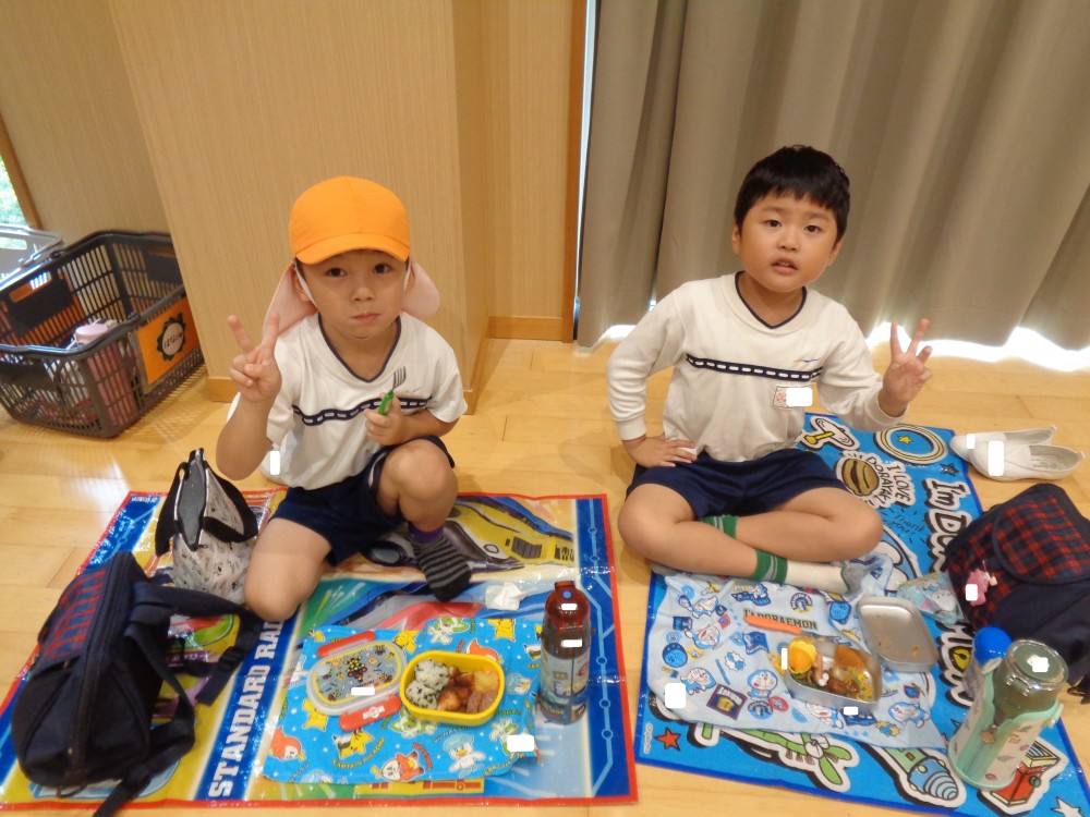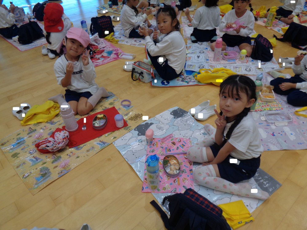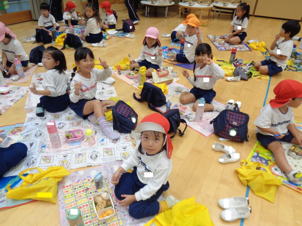 先生やお友だちと一緒に食べるお弁当、おいしかったね![]()