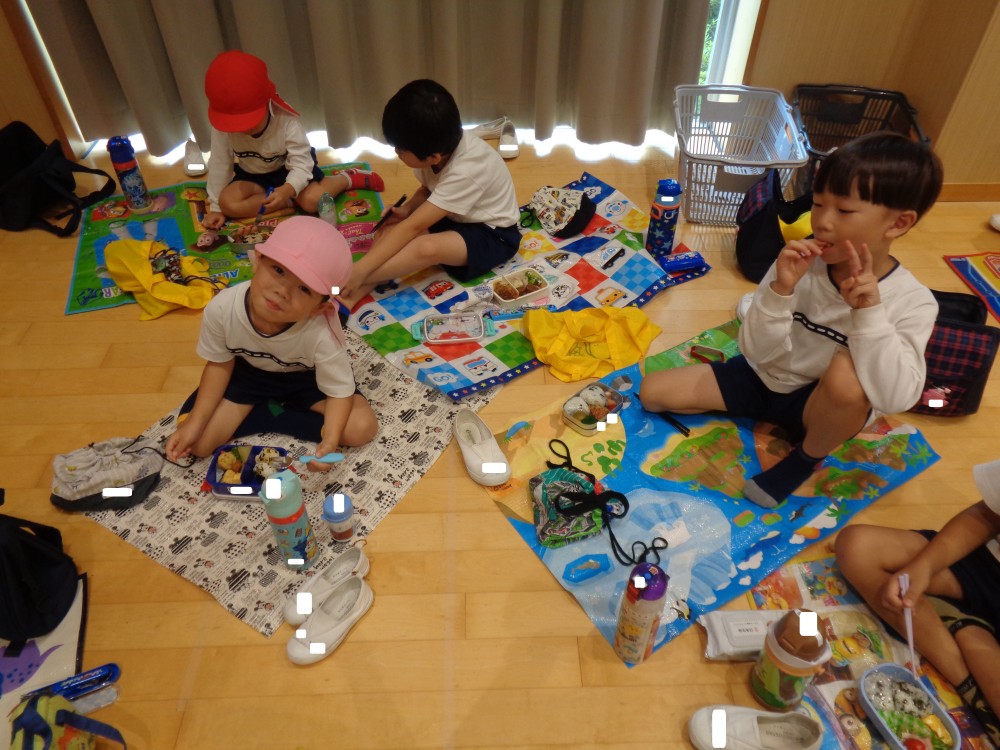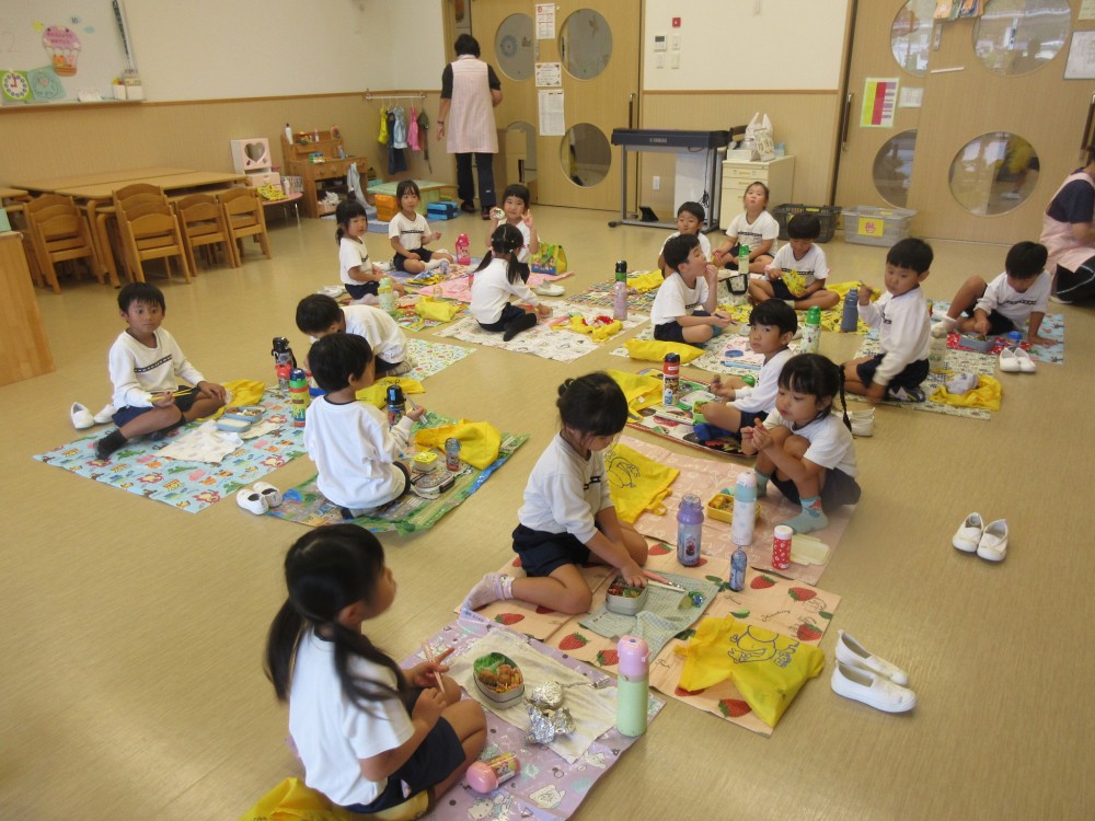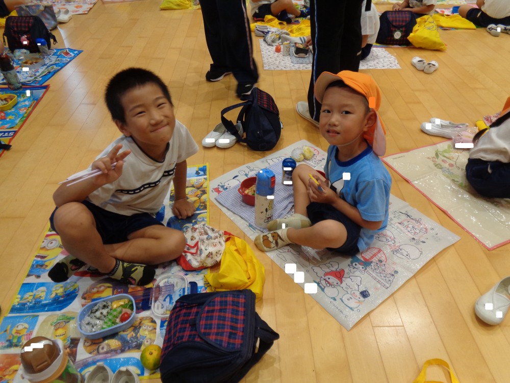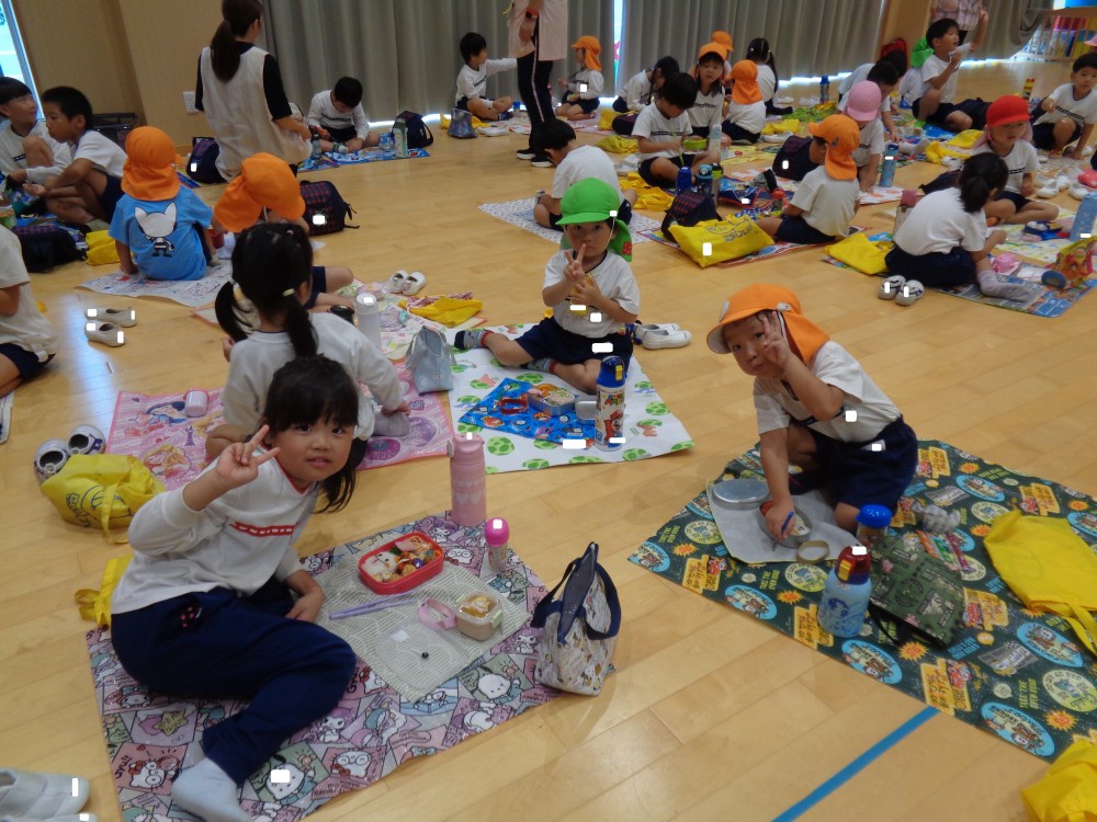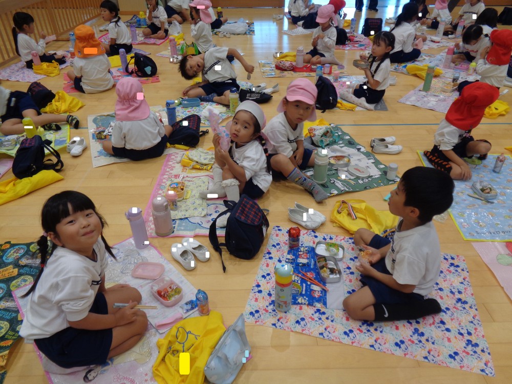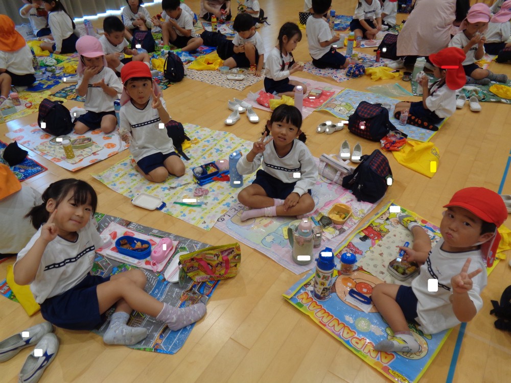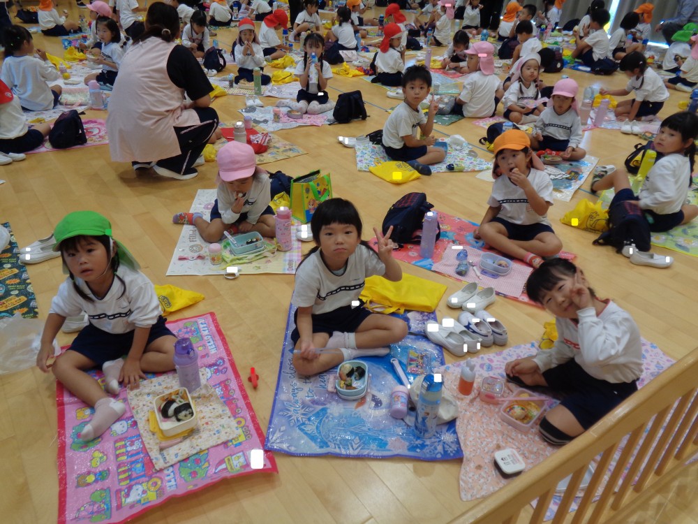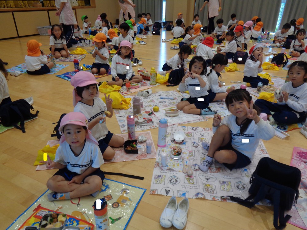 先生やお友だちと一緒に食べるお弁当、おいしかったね![]()