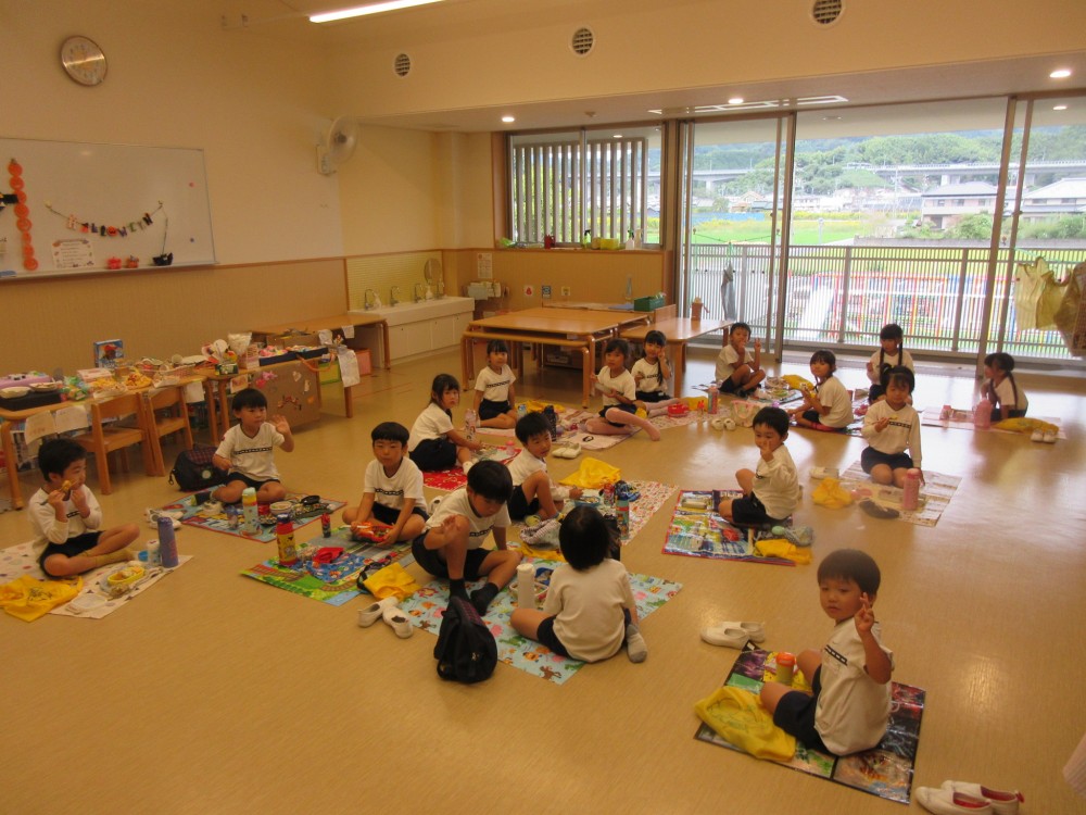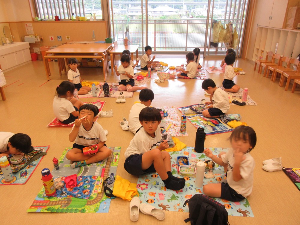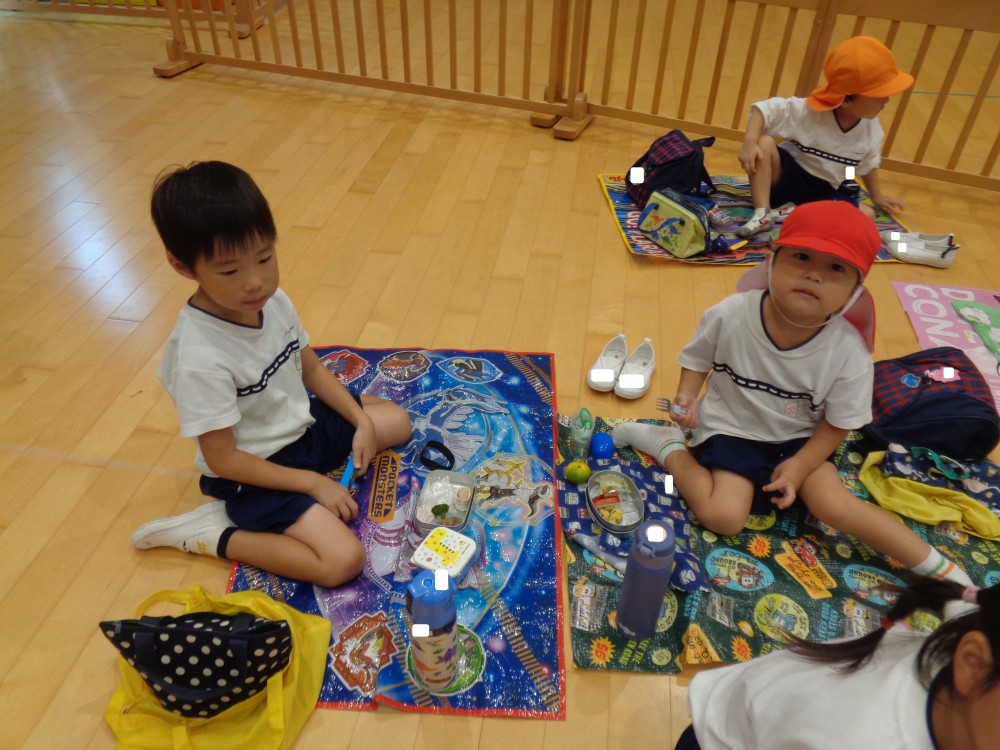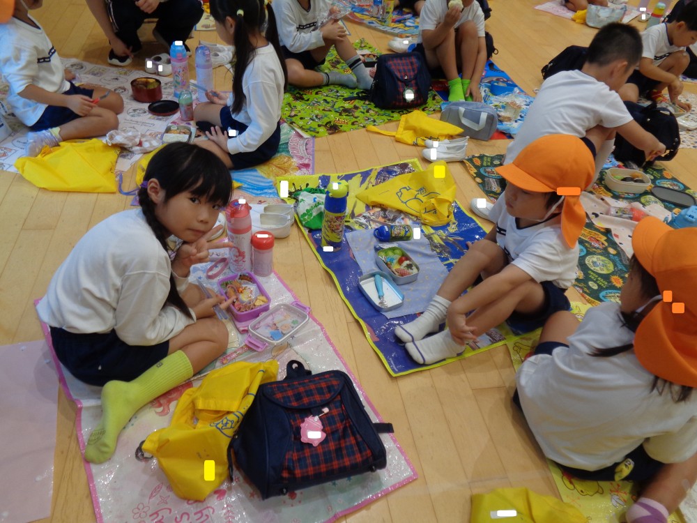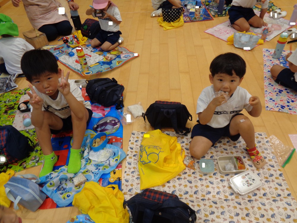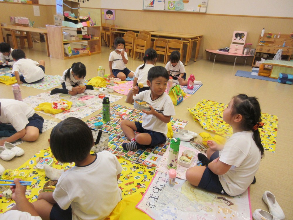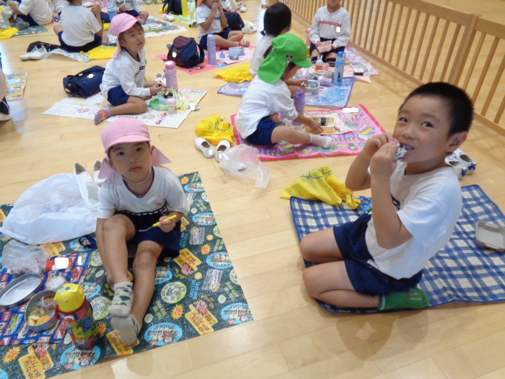 先生やお友だちと一緒に食べるお弁当、おいしかったね![]()