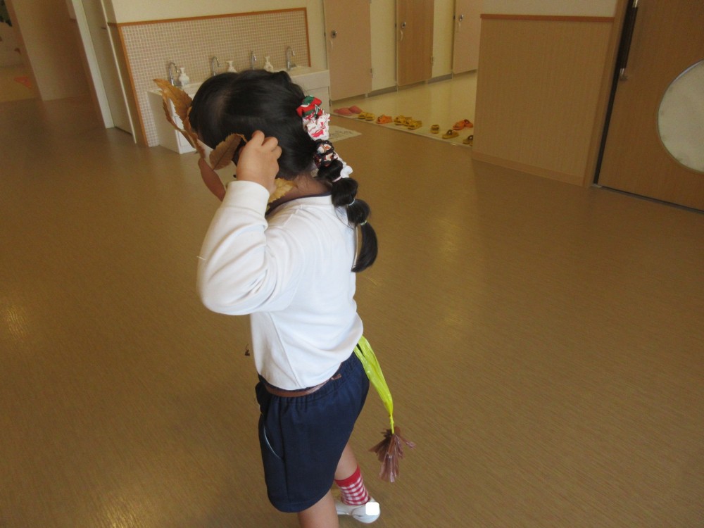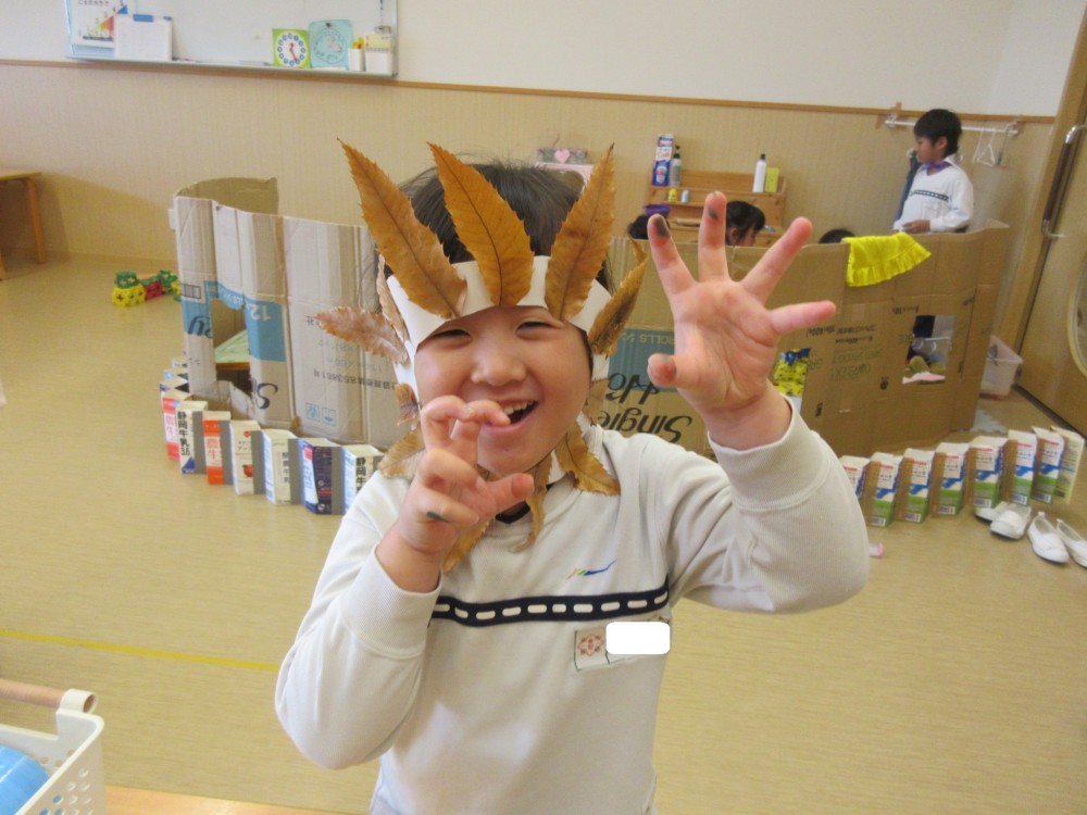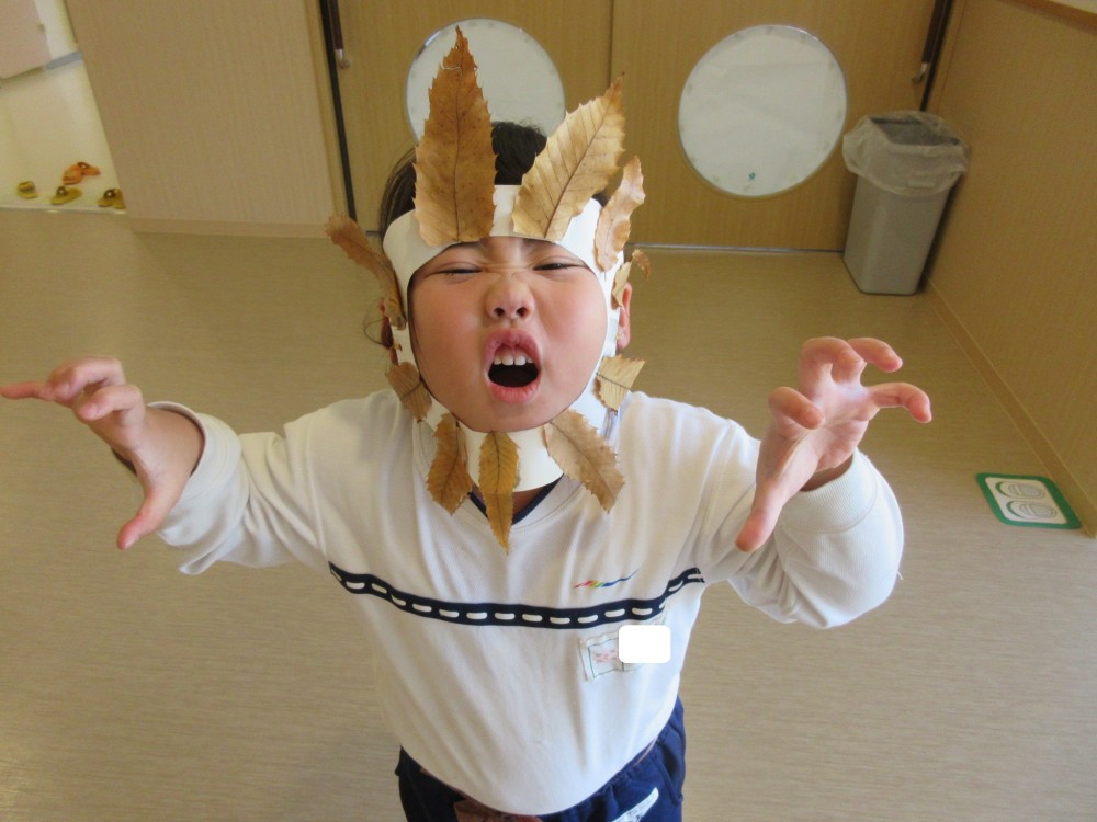 園庭で拾った落ち葉で、今年もライオンに変身🦁