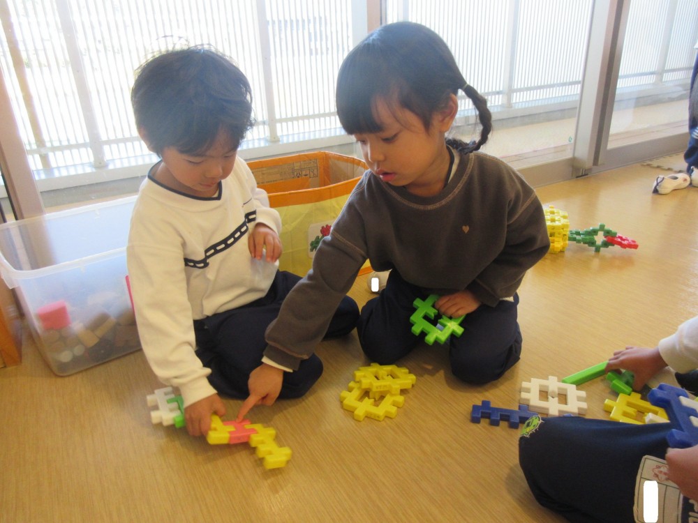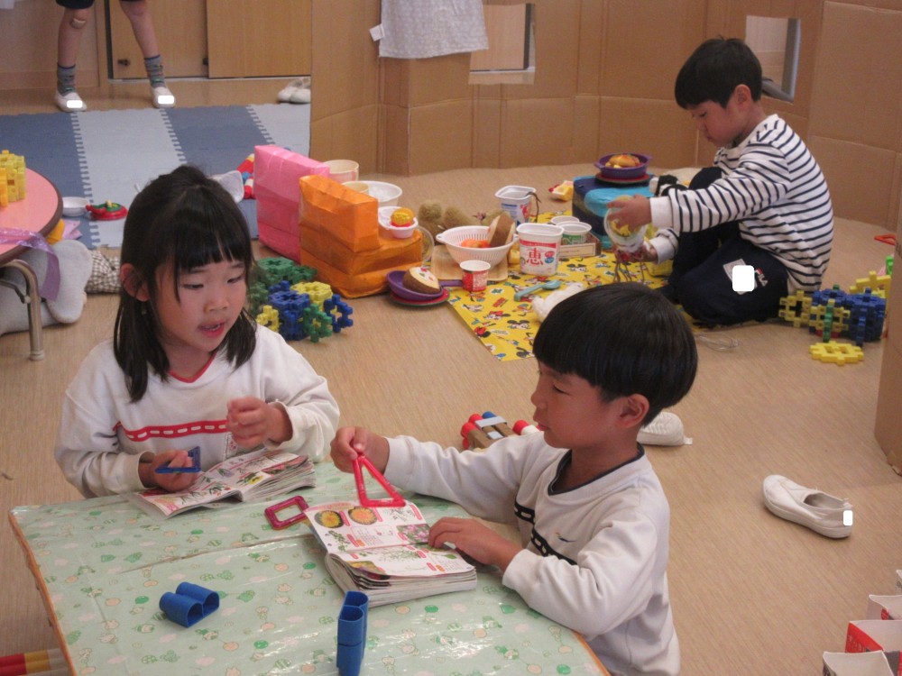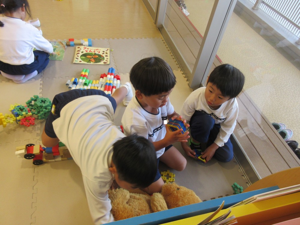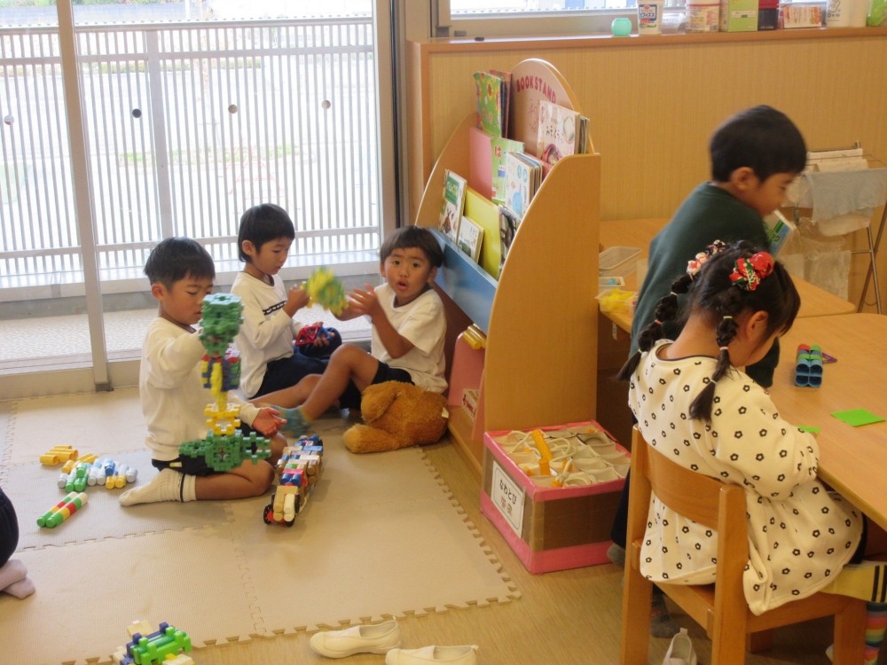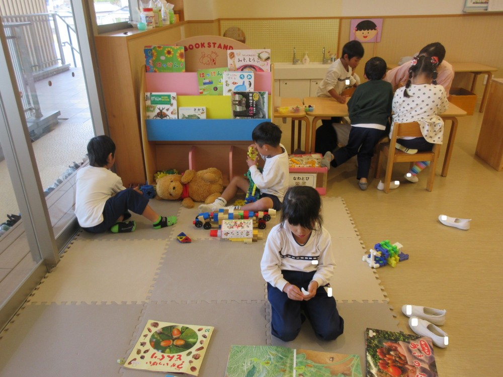 絵本をみてゆっくり過ごしたり、ブロックあそびを楽しんでいます。