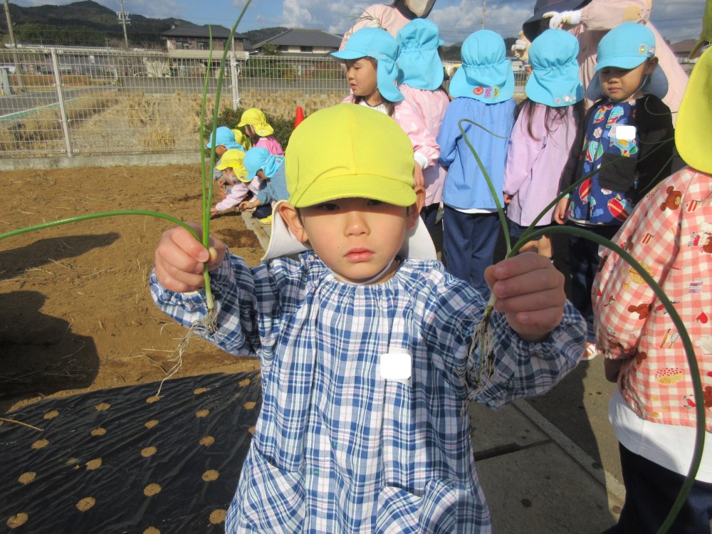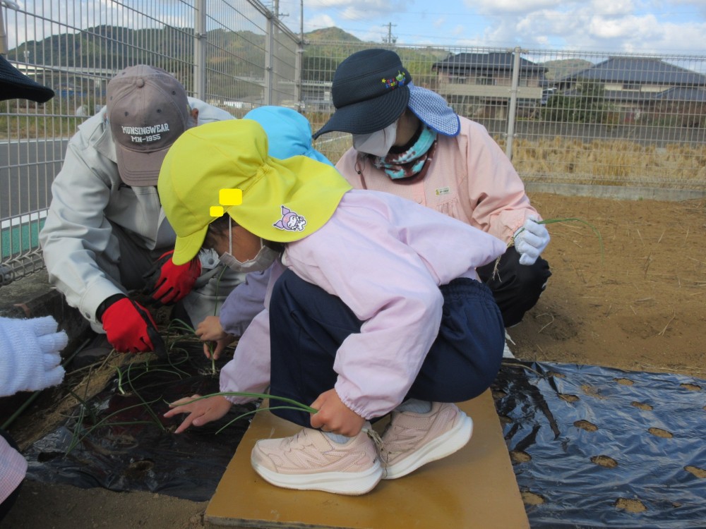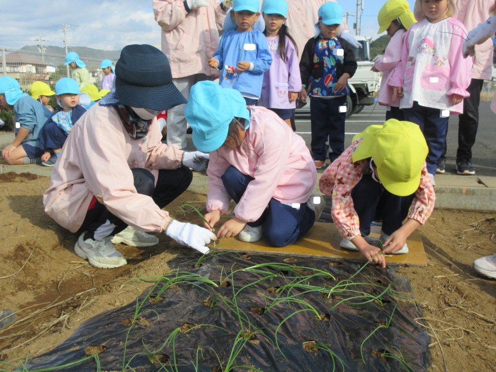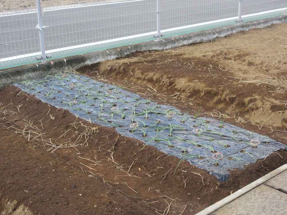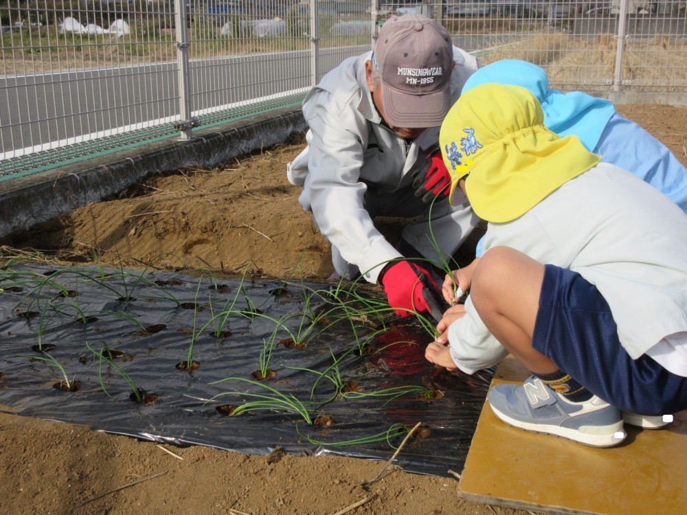 次に、畑へ出かけ、玉ねぎの苗を植えました。