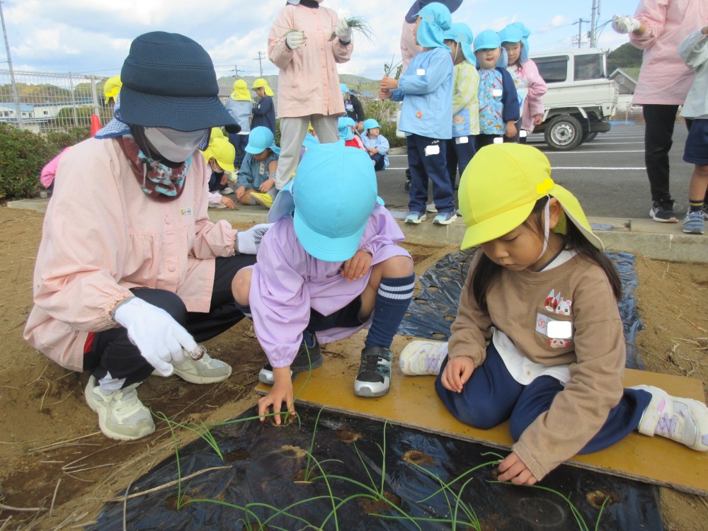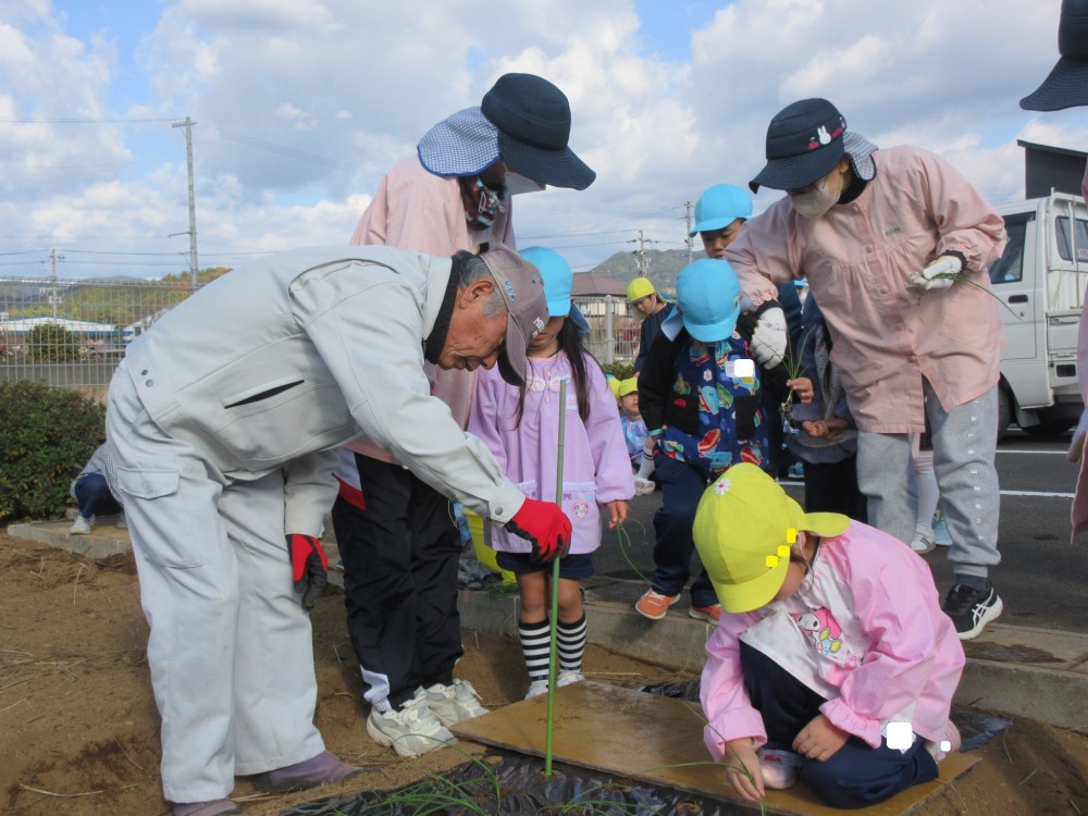今日の畑の先生は、理事長さんです。一緒に苗植えをしてくださいました。