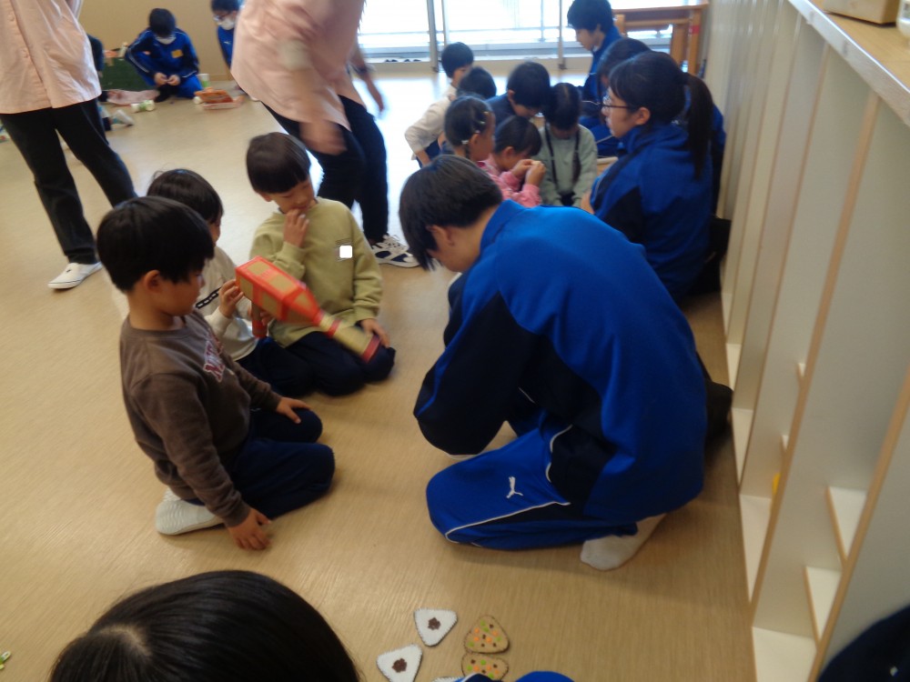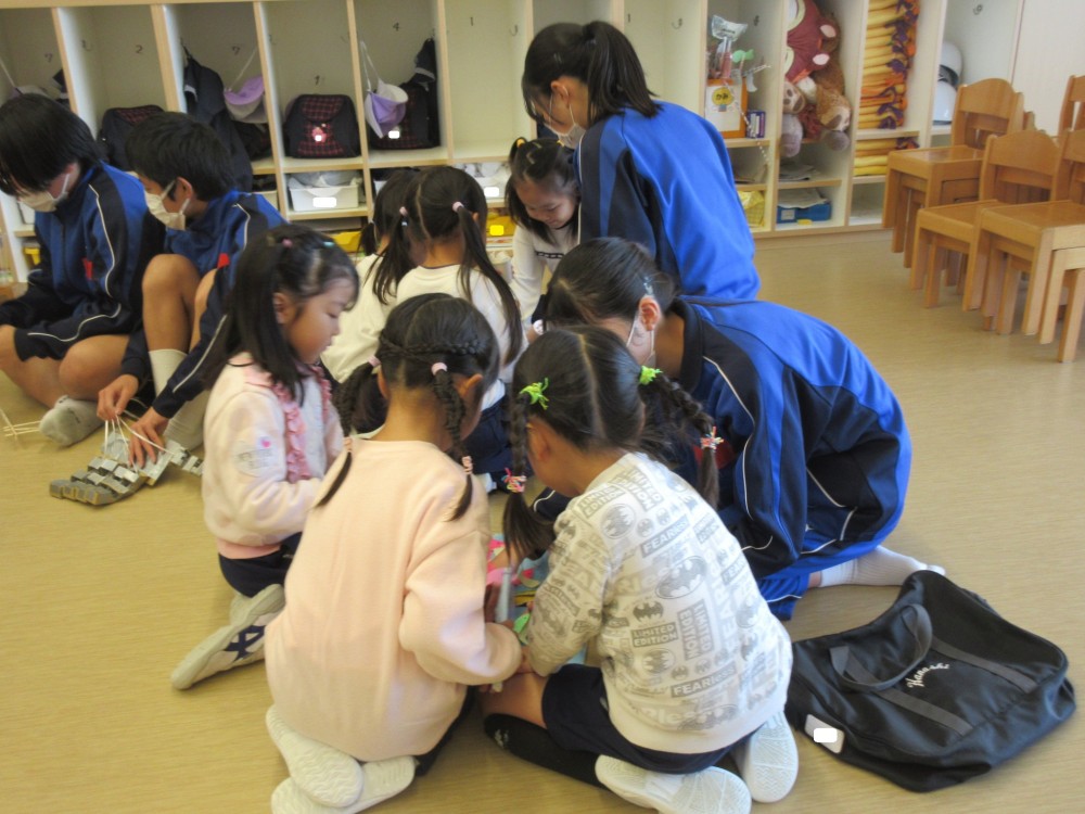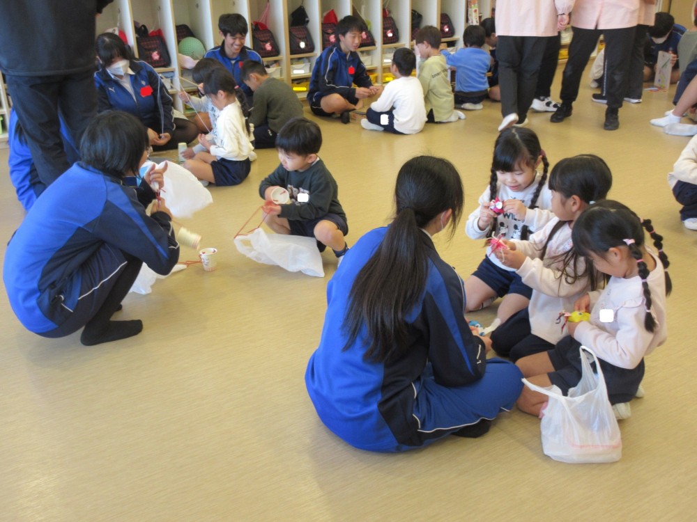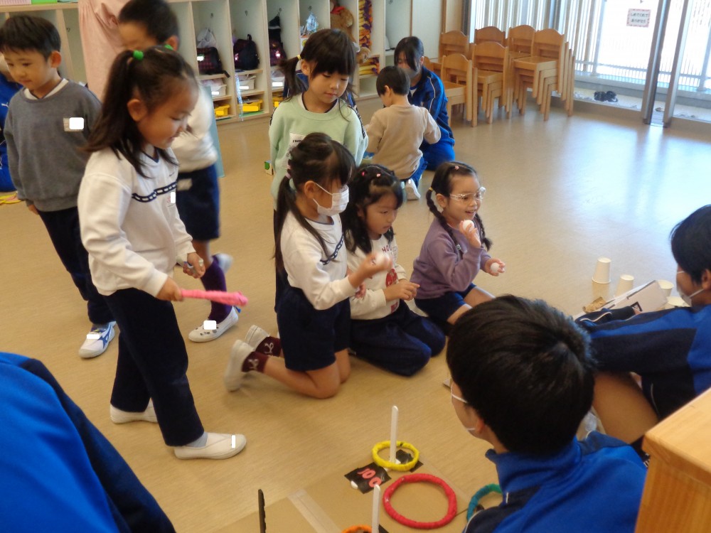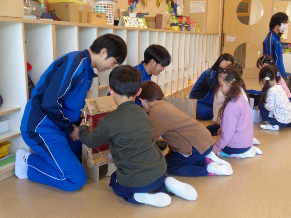 お兄さん・お姉さんといっぱいあそんでもらえて、大喜びだった年長組。アイデアがたくさん詰まった、素敵なおもちゃのプレゼントをありがとうございました。
