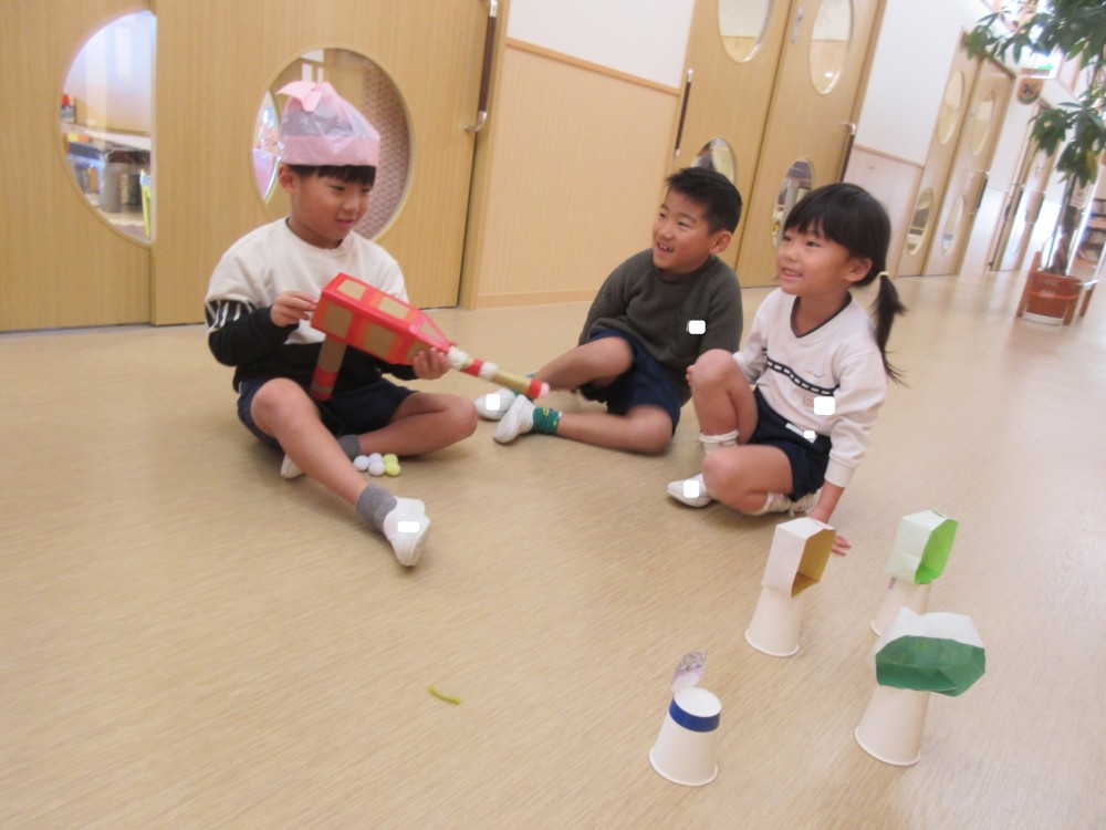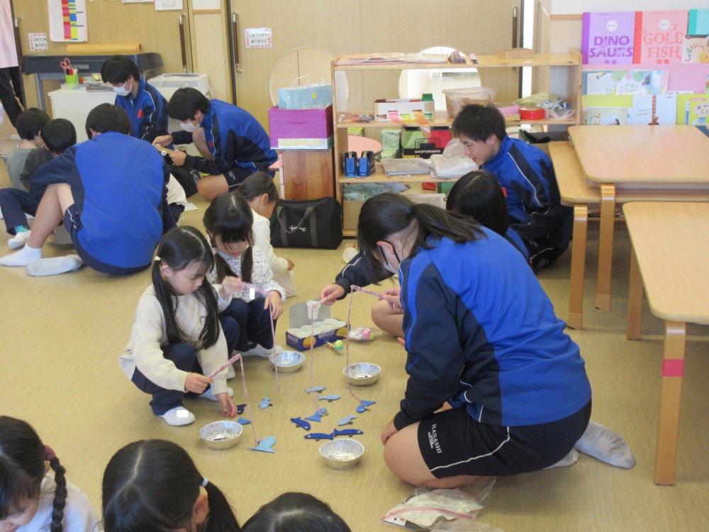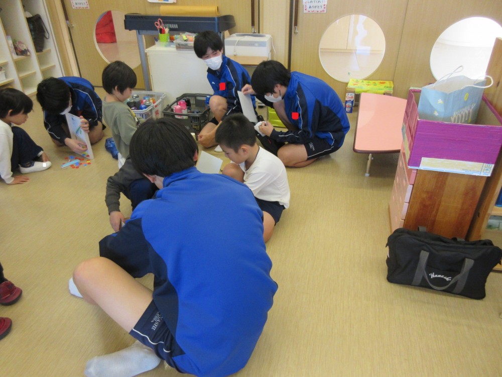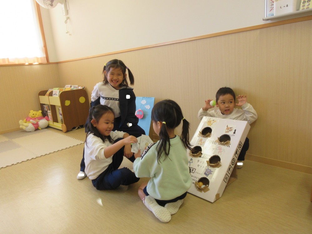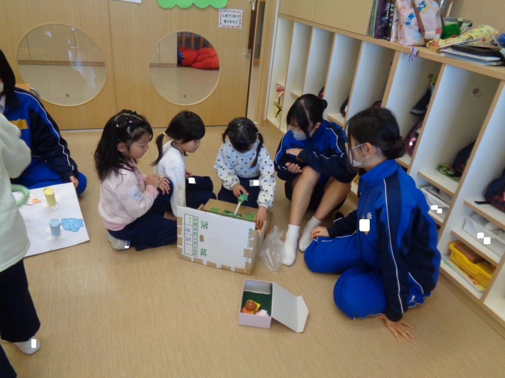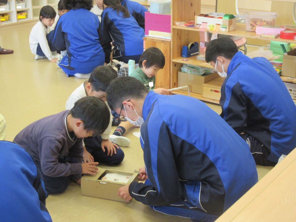 お兄さん・お姉さんといっぱいあそんでもらえて、大喜びだった年長組。アイデアがたくさん詰まった、素敵なおもちゃのプレゼントをありがとうございました。