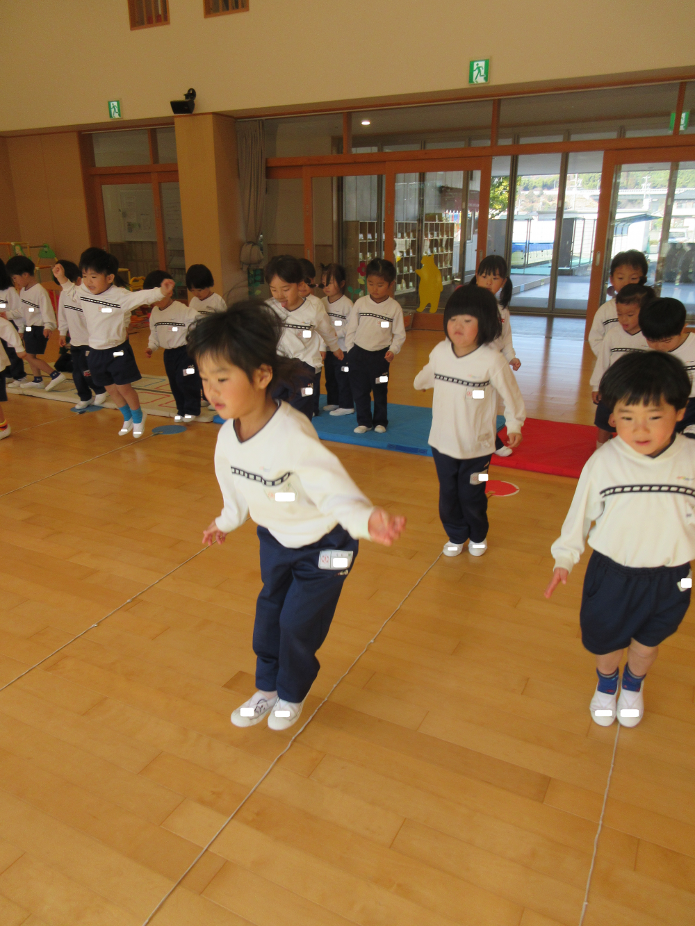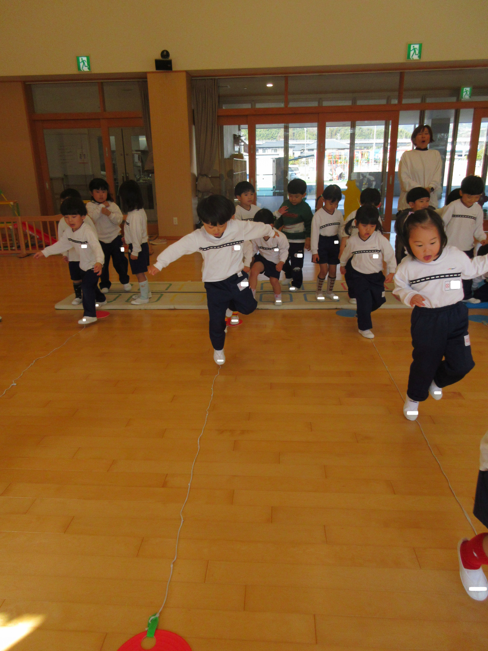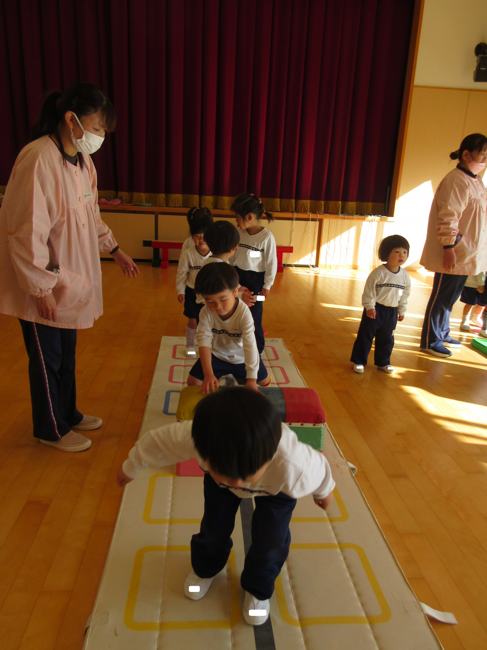 1月19日(月))今日は、初めて年少組が体操あそびに参加しました 先生やお友だちと体を動かして、げんきいっぱい頑張りました