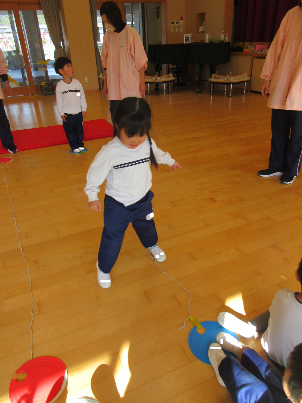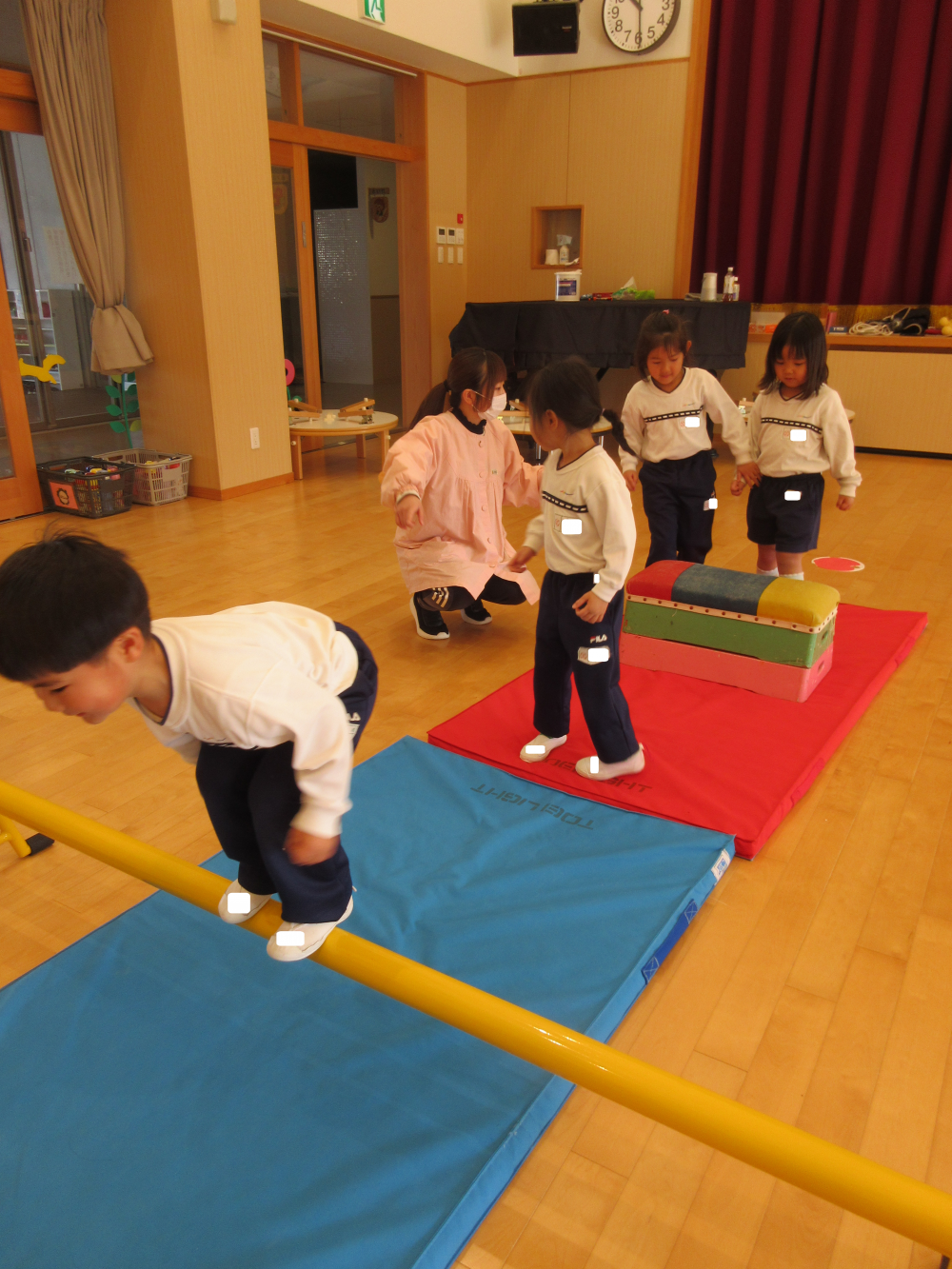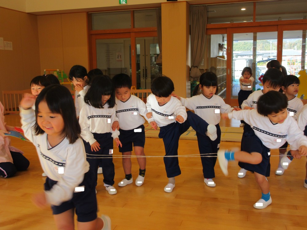 1月19日(月))今日は、初めて年少組が体操あそびに参加しました 先生やお友だちと体を動かして、げんきいっぱい頑張りました