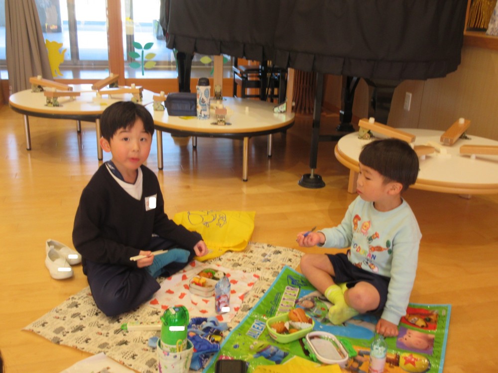 年長組も、園に戻ってからお弁当をいただきました![]()