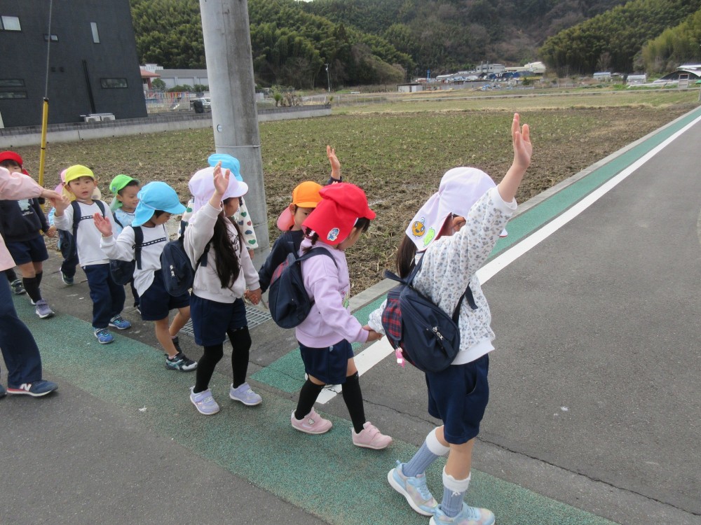 小学校の先生や、お兄さん・お姉さんたちが手を振ってくれました![]()