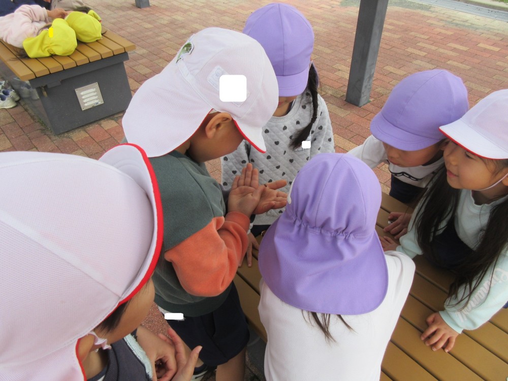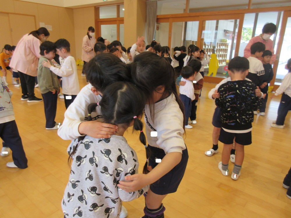 『ひっつきもっつき』という曲に合わせて、ペアさんとリズムあそびをしました![]()