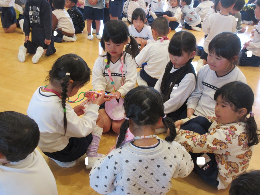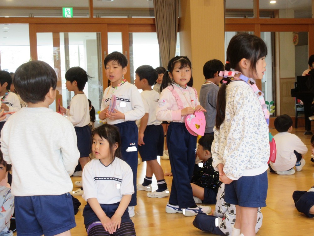 今までいっぱいあそんだり優しくしてくれた年長組さんに、ペンダントを渡しました。