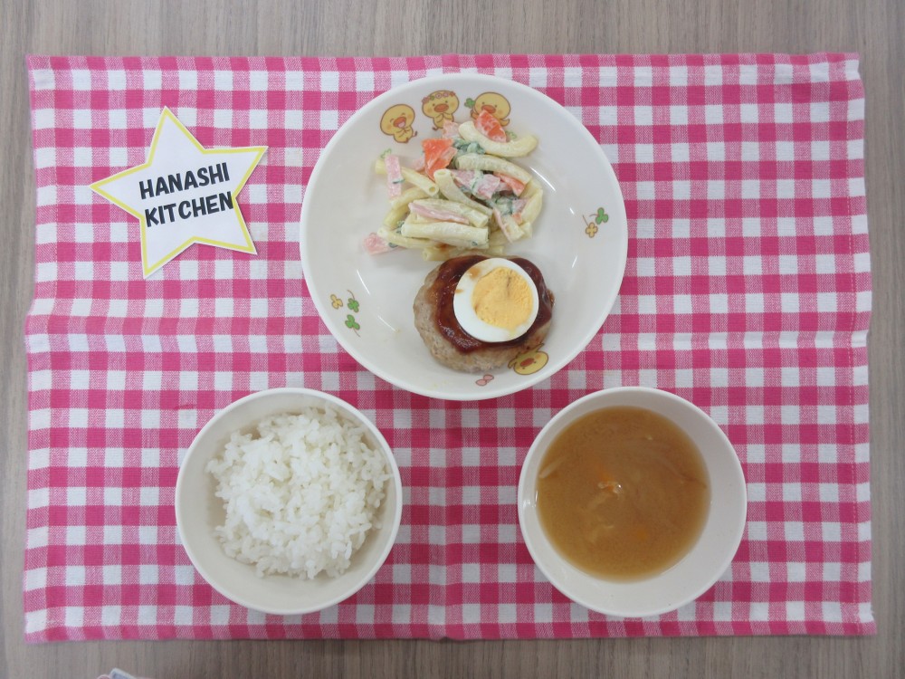 給食のみそ汁に、園で収穫したかぼちゃが入っていました🎃