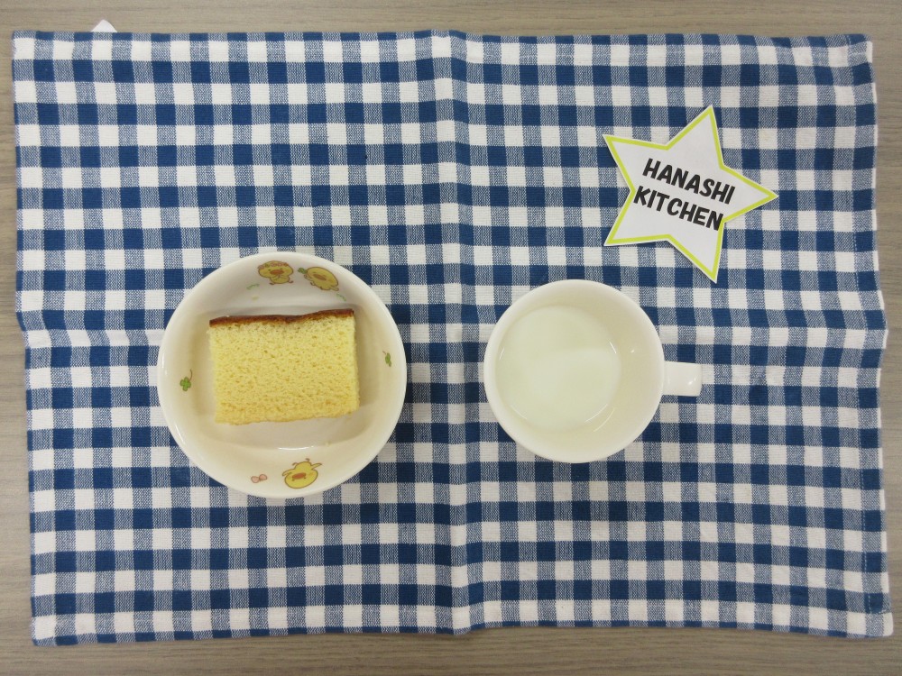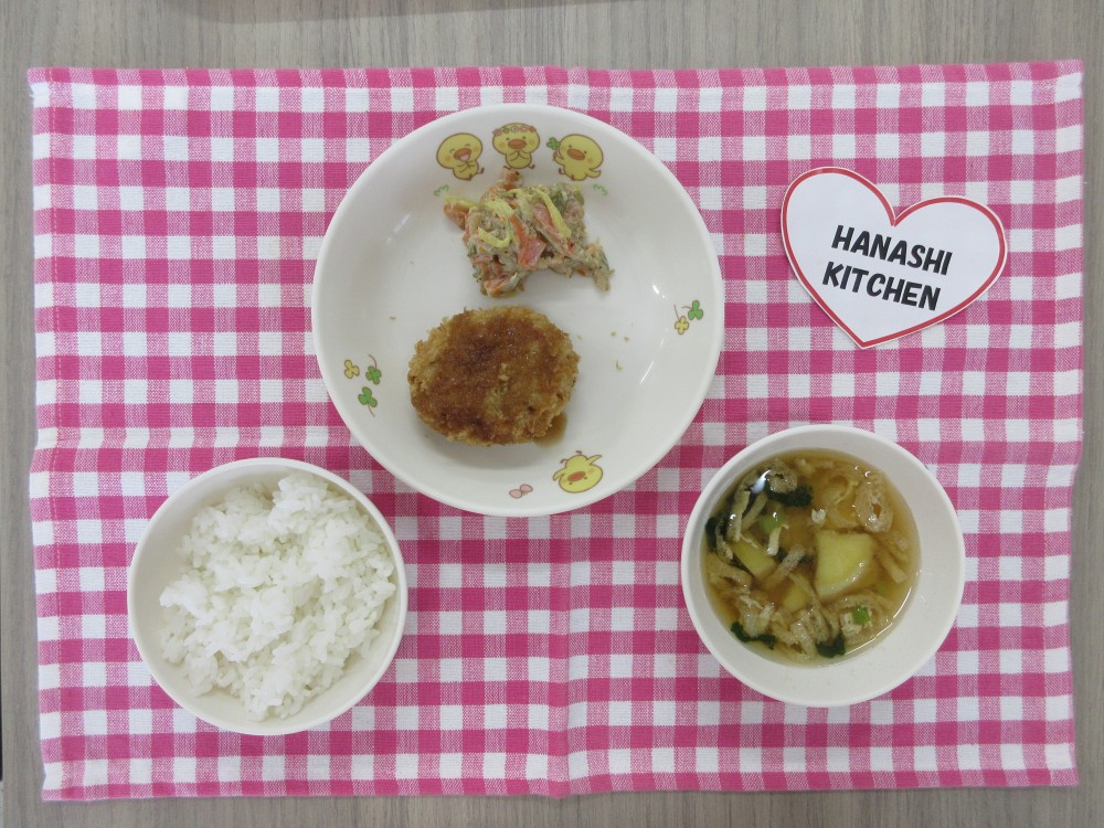 給食の味噌汁に園で収穫したさつま芋が入っていました。