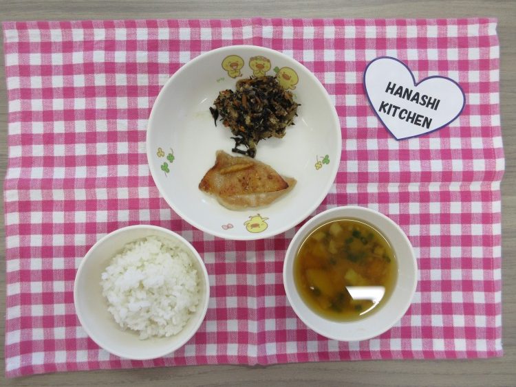 味噌汁に、園で収穫したさつまいもが入っていました。
